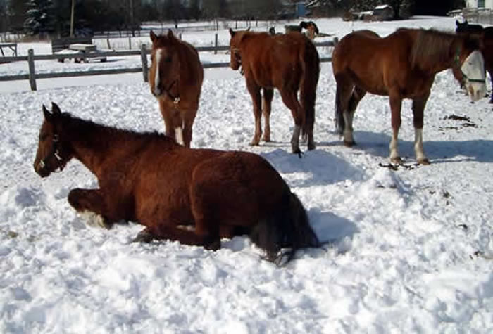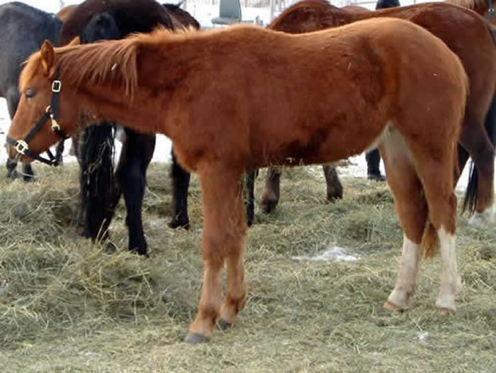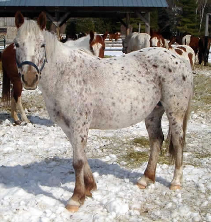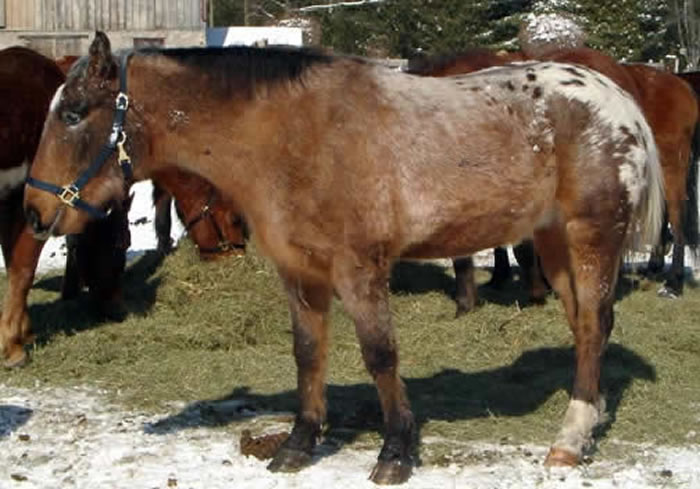 She is 21 years old. She is the lamest horse here and is on Recovery and meds from the vet and doing OK.